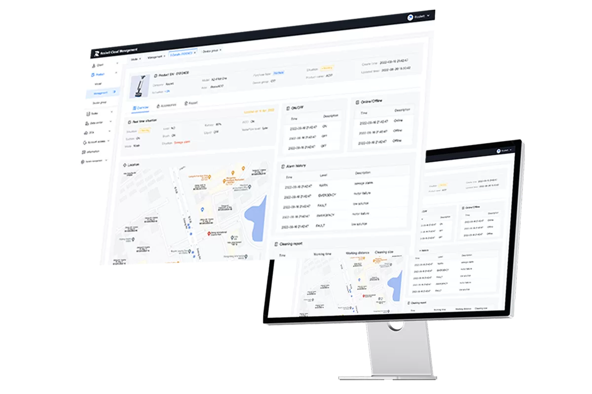 Décomptage de zones de nettoyage, génération de rapports de nettoyage, et disponibilité en temps réel des informations sur les opérations du personnel